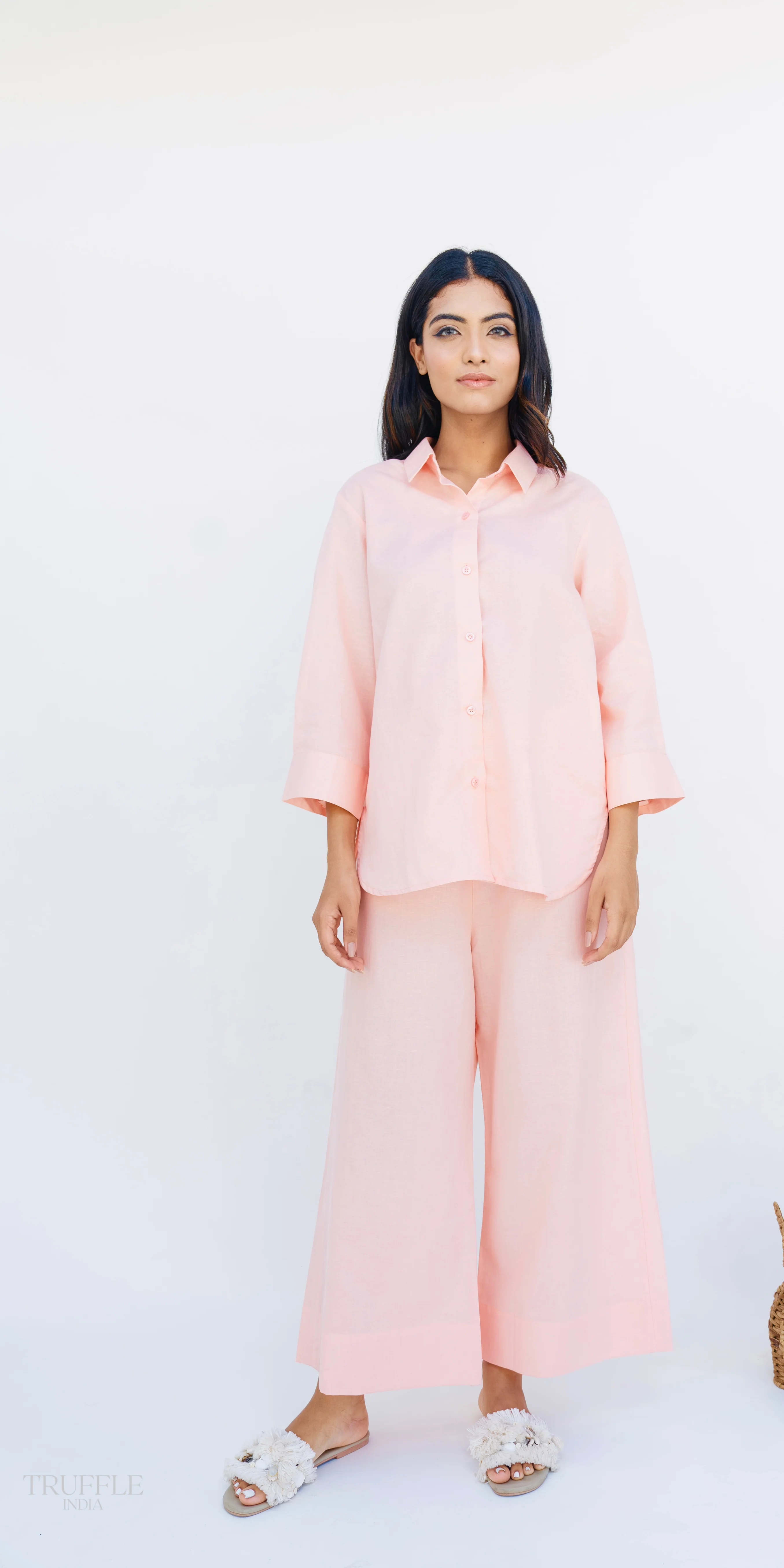 Discover the ultimate luxury of linen with our APRICOT LINEN CO-ORD. Perfect for everyday wear, these cords offer a comfortable and stylish addition to your wardrobe. Made of high-quality linen, this coord set is both practical and fashionable. Elevate your everyday look with the luxury of linen.