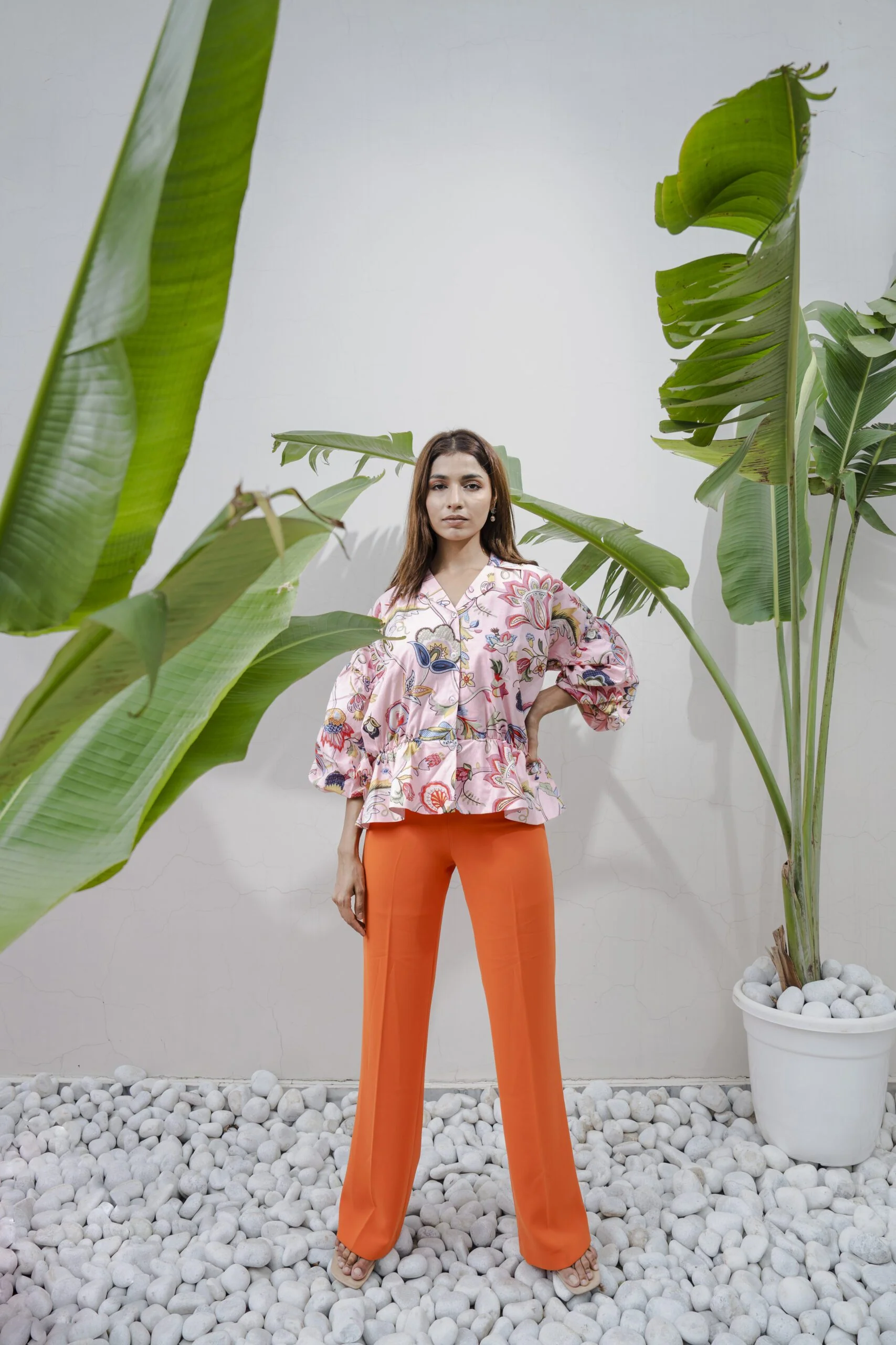 This flower print pink Top is a delightful choice for a summery day. The dress features a collar that adds a touch of elegance and charm. With a waist-clinging design, it beautifully accentuates the baby bump while providing comfort and support. The vibrant flower print adds a cheerful and feminine touch, making it a perfect choice for a sunny day out. Embrace your pregnancy glow in this lovely top, combining fashion and functionality flawlessly.